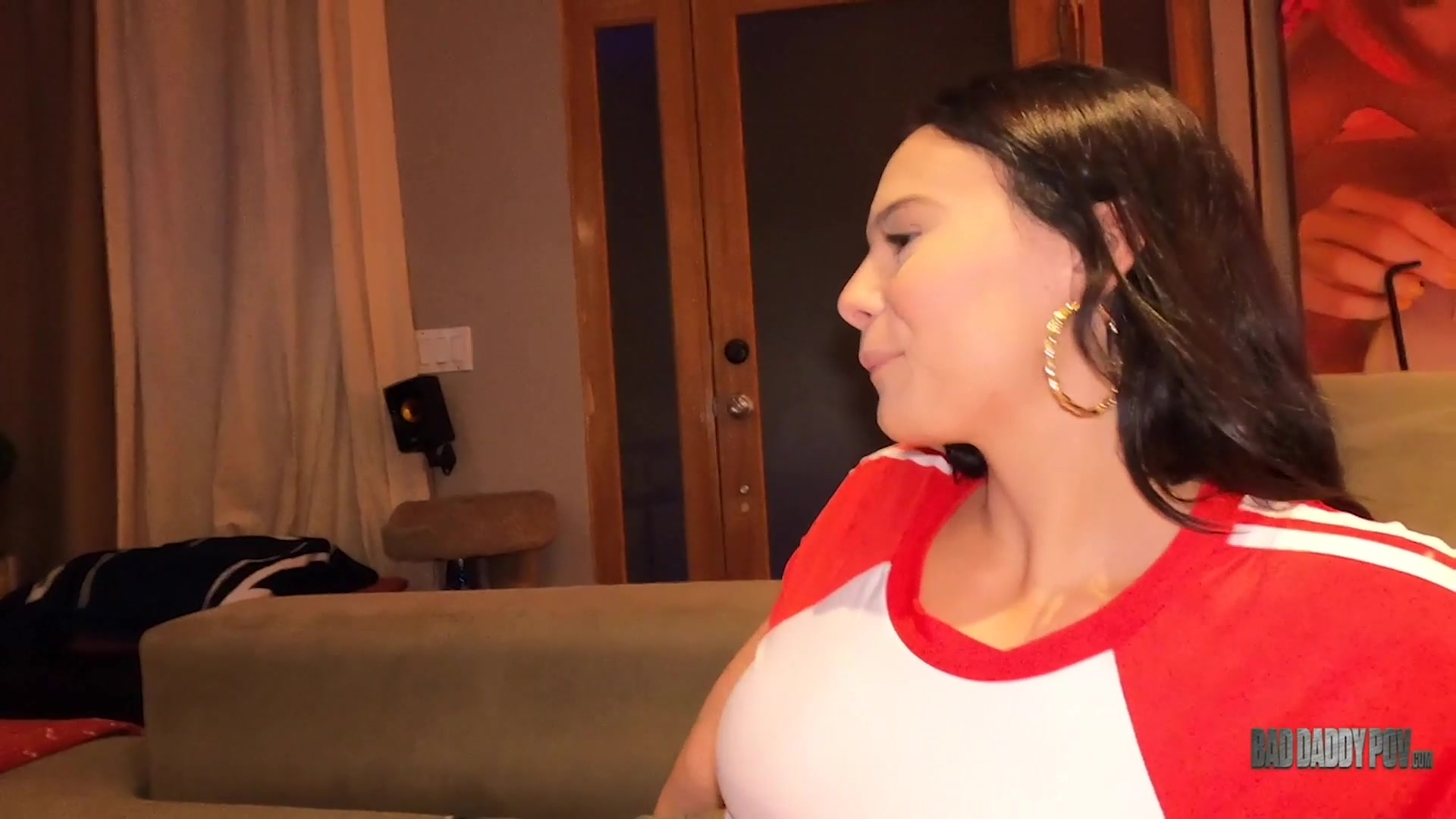 Petite teen Violet Star is a total slut when it comes to the man of the house. This stunning brunette loves teasing and flirting with her stepdaddy. Her old man had enough of Violet's naughty antics, so he decided to do something about it. He goes to the young slut's room and sees her chilling on the couch. The red and white crop top and denim shorts make Violet's body more irresistible and enticing. Violet shows off her new red thongs to her stepfather, hoping that he would finally take it off for her. As Violet suspected, her stepfather has become horny as fuck when he saw her big ass. She reaches for his cock and notices that it is already hard and ready for action. Violet gives her old man a blowjob and deepthroat. She then tries to give him a titjob with her perky tits. All the teasing and playing made the old champ want to fuck his stepdaughter so bad. Violet notices this so she quickly bends over and offers her teens pussy to her stepdaddy. Her big butt graciously bounces as her stepdaddy pounds her cunt from behind. After fucking in doggy style, the horny duo changes their position to reverse cowgirl and cowgirl. Violet leans backwards and spreads her legs, showing the full splendour of her stretched out pussy. The lustful stepdaddy tirelessly drills Violet's pussy until the beautiful stepdaughter cums over and over again. Her stepdaddy keeps fucking her in the twat. Her moans and shivers inspire him to give his stepdaughter all he had. After a few more fast and hard thrusts, the wild man feels like he can't hold in his cum any longer. He lets Violet play and suck his cock first before spraying his fresh cum all over her stepdaughter's beautiful face.