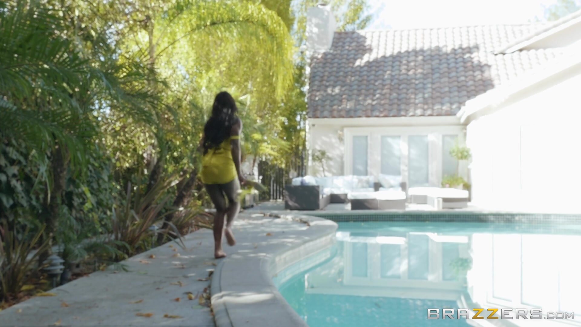 Ana gets so hot and horny while she walks, she can't help but rub one out. She sneaks into a backyard and plays with her pussy on the patio. As she she indulges in a little private time, Ana realizes that someone is home. She walks up to the patio door and catches sight of Keiran doing a load of laundry. He looks like a decent fuck, so Ana pulls on her nipples as she watches. Keiran catches Ana in the act and pulls her inside the house for questioning. But who can stay mad at a face like that?
