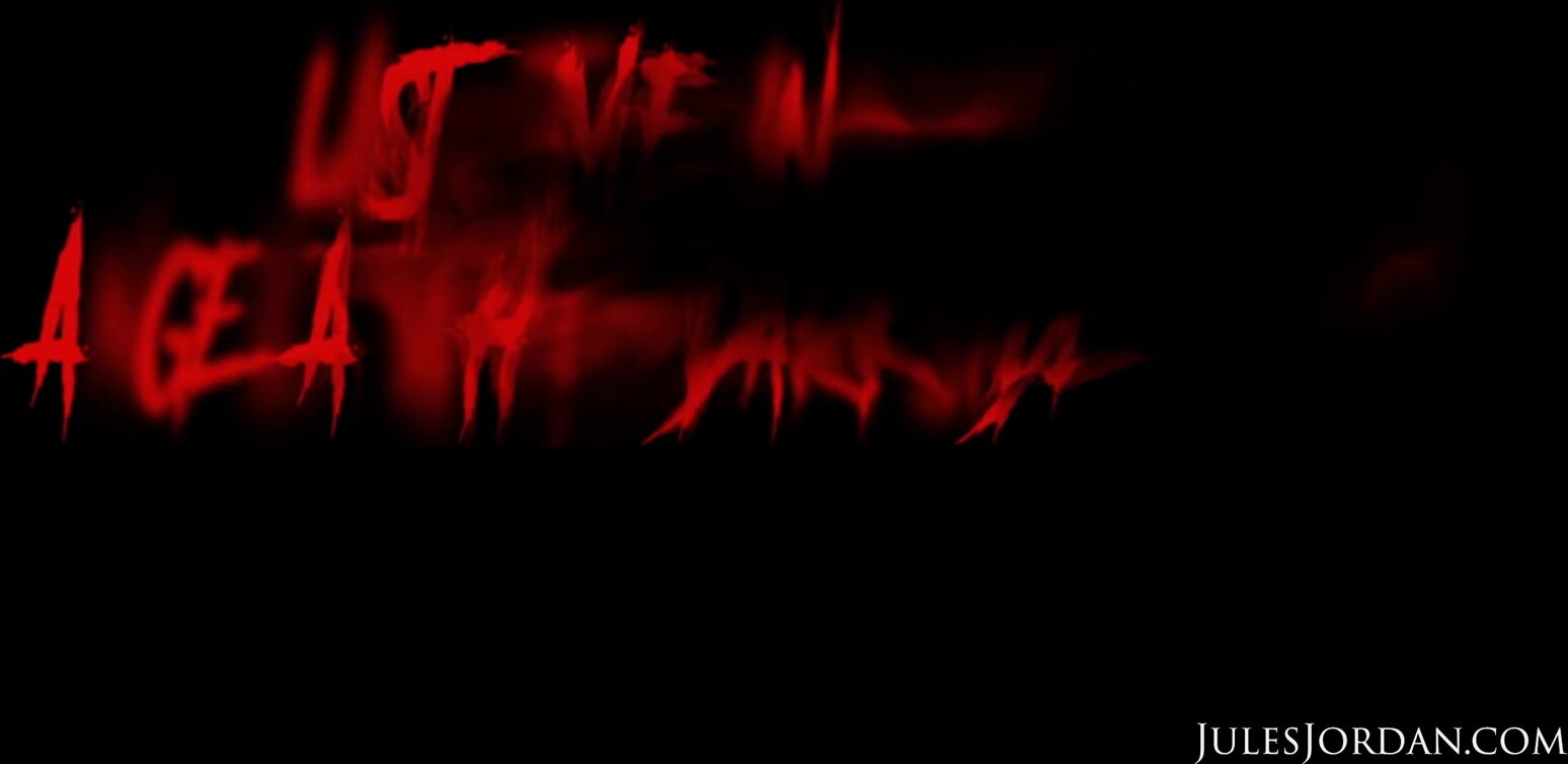 Angela White takes control and punishes Jules for being a bad slave! Wearing patent leather lingerie with silver studs all over, Angela swings a dog leash as she tempts you with her curvaceous body. She runs the leash across her giant tits before latching it onto Jules’ collar and walking him to the bedroom to begin the destruction. Angela pulls out her massive fun bags and smothers Jules with them, making sure to put her nipples in his mouth to be serviced. She stands him up and cuffs his wrists against the door then puts a dog bone shaped gag in Jules’ mouth so no one can hear him scream. Angela pinches his nipples and gnaws at his balls through his tighty whiteys before grabbing a riding crop to to slap his sack. Knowing there’s a lot more she can do to punish his balls, Angela pulls out clothespins and clamps them on his nipples and balls then brings a pinwheel to tease him some more. She notices his bulging cock and decides to give him a small reward as she pulls it out and starts licking and sucking on it. Much to Jules’ delight, Angela rubs her soft boobs against his dick before wrapping it with 3 cockrings and smacking it with the riding crop. Angela breaks the cardinal rule of BJ’s and uses her teeth to tease his bound cock before grabbing a whip to flick against his balls. It’s getting harder for her to resist pleasuring Jules’ rock hard boner so Angela decides to give him a proper blowjob and titty-fucking. Once you get this busty babe started you can’t make her stop, while sucking his dick Angela slides off her panties then spins around and takes it straight up her ass! Angela does all the work as Jules is still bound to the door, but she lets him free so he can munch on her pussy and asshole as they move to the bed. Finally removing his blindfold, Jules gets to work pounding her horny pussy in missionary before getting into spoon so he can get back in her ass. Angela gets on top to drive his dick deeper into her hungry booty in reverse cowgirl until Jules blows his load all over her gigantic tits!