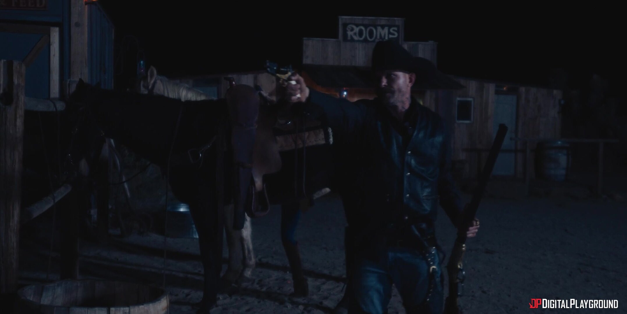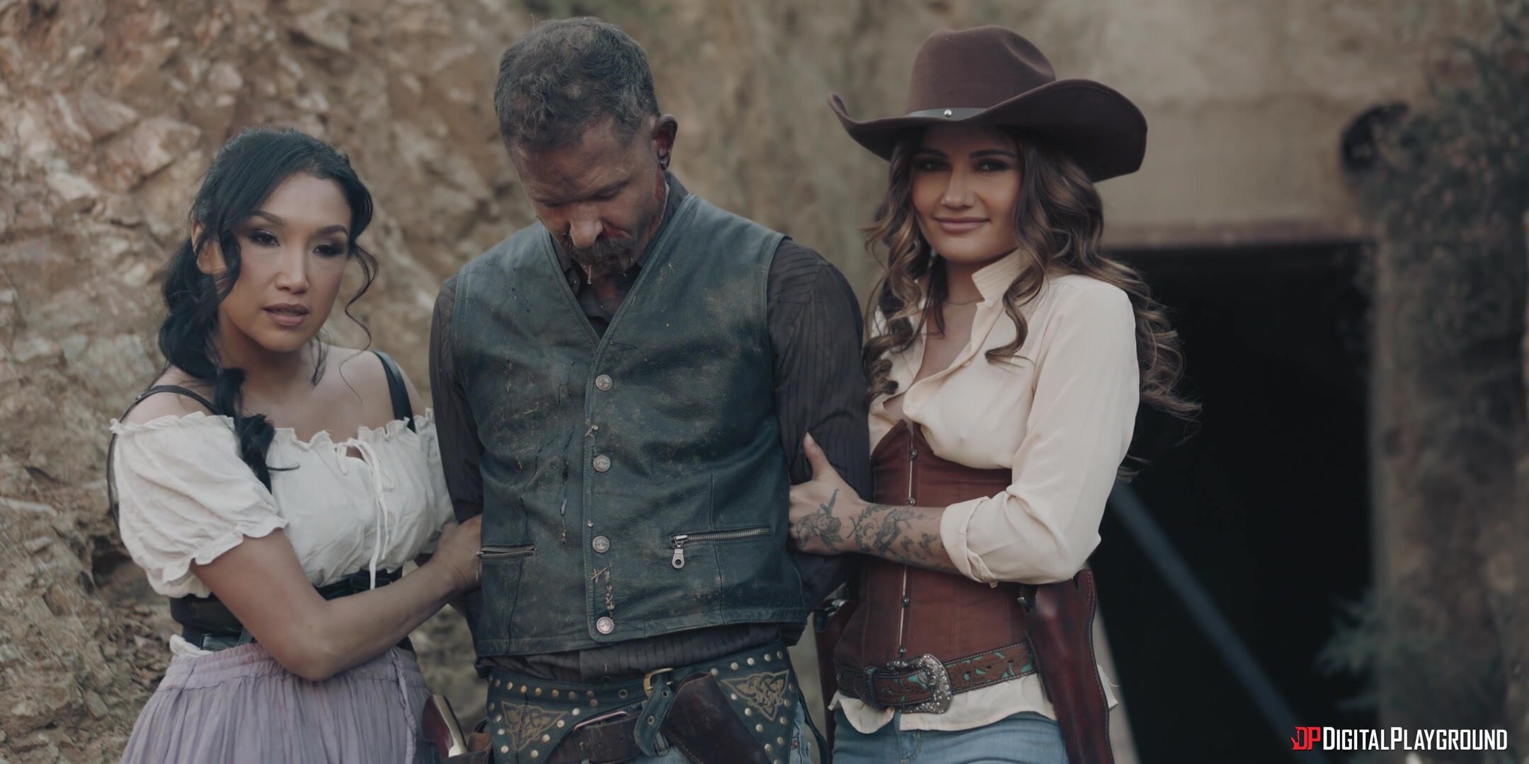 There's danger at Gold Diggers Saloon when outlaw Charles Glanton learns the gold rush might be fake! Maria (Kimmy Granger) swears it's real and lures him to Sade Freeman's (Adria Rae) claim, riding out of town in the middle of a shoot-out! Maria buys time for Sade to show up and get the drop on the man she swore vengeance on, and the women even share the spoils with Charles's ex partner Kimmy. Maria and Sade return the stolen ring to General Flores (Seth Gamble) and claim the reward. These women always want more, so they share the general's cock too!