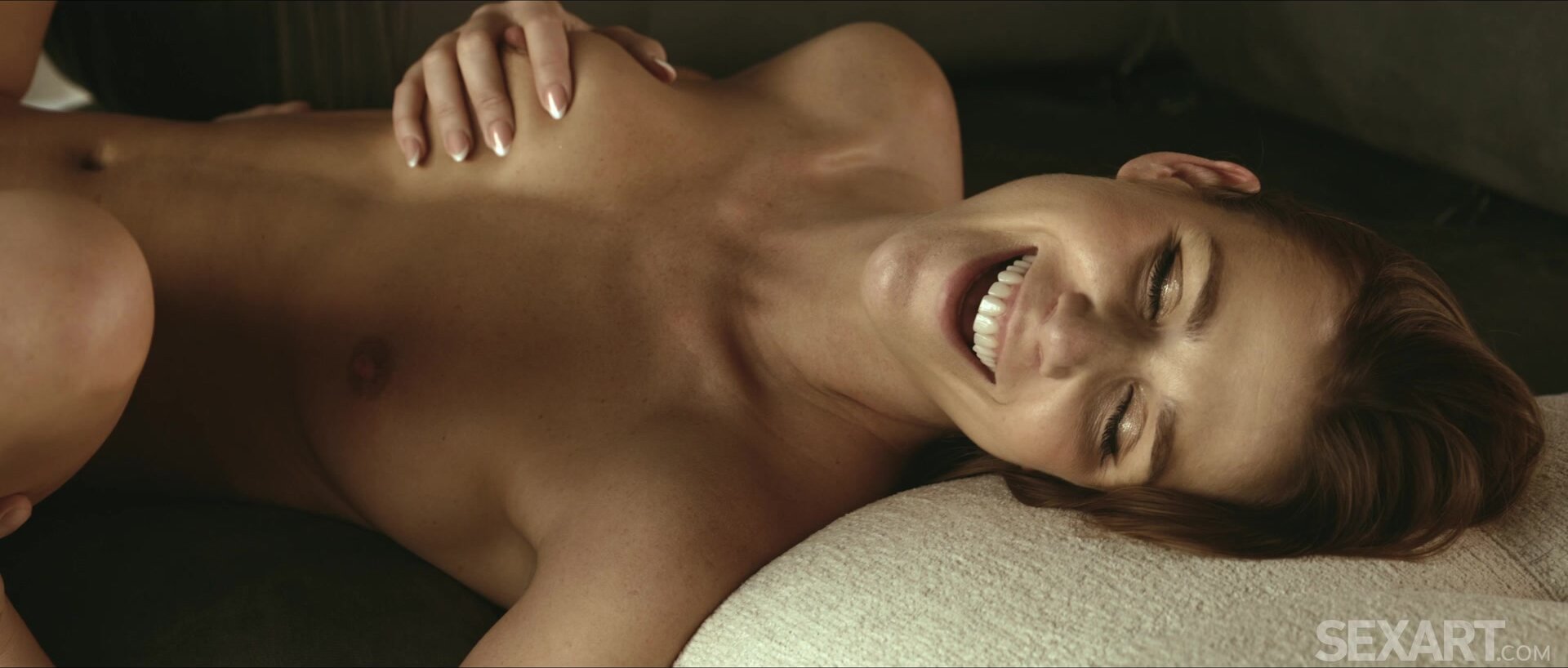 Gorgeous Alexis Crystal is dancing seductively, as Andrej Lupin’s erotic movie "Perfect" begins. She’s wearing headphones, so she can’t hear Jonny Oblong discussing her with a friend on the phone, describing how awesome she is – but he ends the call when she lets her dress slip to the floor, exposing her beautiful naked body. Alexis straddles Jonny on the sofa and kisses him passionately; he sucks her nipples and licks her plump-lipped pussy, giving her an intense orgasm. Freeing Jonny’s rigid cock from his jeans, Alexis gives him an eager blowjob, sucking and stroking skilfully. She moves astride him again and impales herself on his erection, sliding up and down energetically, then spins around into reverse cowgirl and rides the waves of pleasure as Jonny thrusts up into her. Dismounting, Alexis sucks Jonny’s cock even more voraciously, before he penetrates her in doggy and fucks her hard and fast. She has a powerful climax, and another, triggering Jonny to fill her with hot cum.