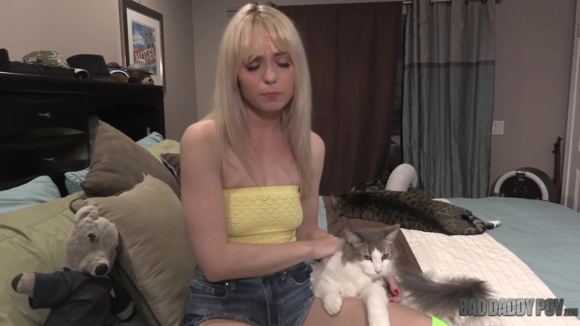 Animal activist babe, Lilly Bell, with her blonde hair, petite body, and natural titties has brought home another cat to save, but stepdaddy has had enough and can't afford for his stepdaughter to keep bringing stray animals to the house. However, Lilly has quite the solution for this dilemma. Her and her pretty mouth convince stepdaddy to allow for the cats to stay with the help of her mouth and tight pussy wrapped around his thick cock. Lilly wraps her little mouth around his cock and he's hesitant but completely hard for his little girl, he deduces that if Lilly doesn't tell her mom and she gets to keep the cat and he gets to fuck his little girl then they all win, and with a mouth full of cock Lilly gestures yes. She sucks and slobbers all over his thick dick and stepdaddy moans and groans as his stepdaughter does a wonderful job, even better than her mom. As she slurps his cock and leaves it drenched in her spit, he makes her get up so that he can see her cute little tits, he slaps them a little and she moans asking him to do it again. Stepdaddy makes Lilly get up and thrusts his cock in her, her voice drops an octave and is enthralled by her stepdad stretching out her pussy, she pushes her ass back trying to get more of her stepdaddy in her, his dick is addicting. Lilly moans louder and louder as her stepdad continues to fuck her deep and hard in doggystyle position while she furiously rubs her clit. Lilly then furiously sucks his cock, giving her stepdad the sloppiest blowjob along with some really sexy dirty talking. She sucks his dick with such speed and ferocity, she sucks his balls and licks him from his taint to the tip of his cock, he wants more. Stepdad makes her climb atop him and she rides him hard and fast, she moans and shrieks as his cock penetrates her tight teen pussy deep. She continues to ride in cowgirl and then reverse cowgirl, her eyes roll back into her head as his cock fills every crevice of her young pussy. Stepdaddy hungry for her pussy continues to fuck her in every which way until he's about to cum and Lilly gets on her knees and begs him to cum on her face. She jerks off her stepdaddy until he shoots his load all over her face and hair and eyes.