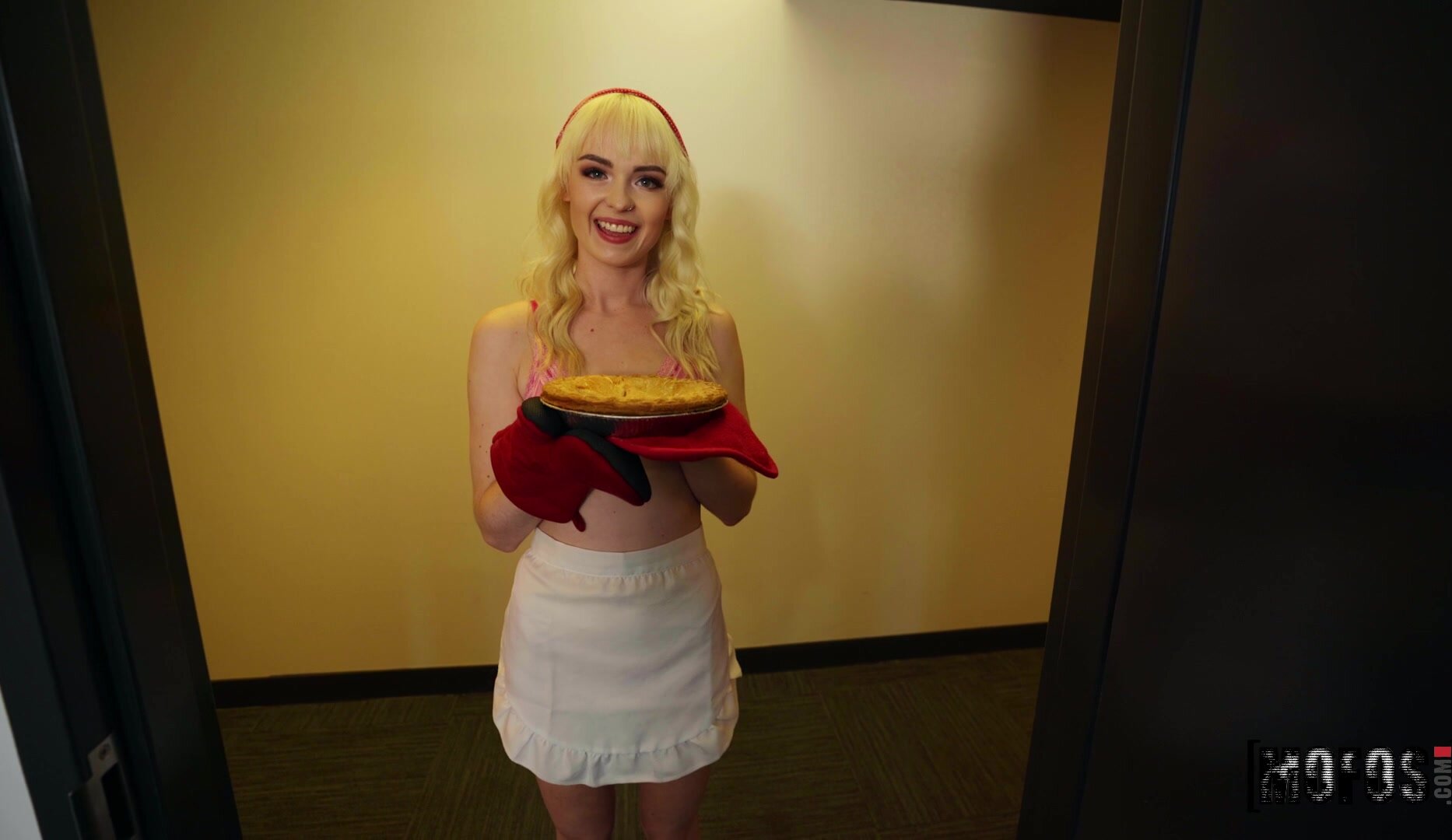 I just moved into a new apartment and my neighbor comes over and brings me a pie - she's basically dressed in lingerie and I notice that she's coming on to me. Soon, she's feeding me apple pie with her hands and opening up her sweet, tight hole for me!